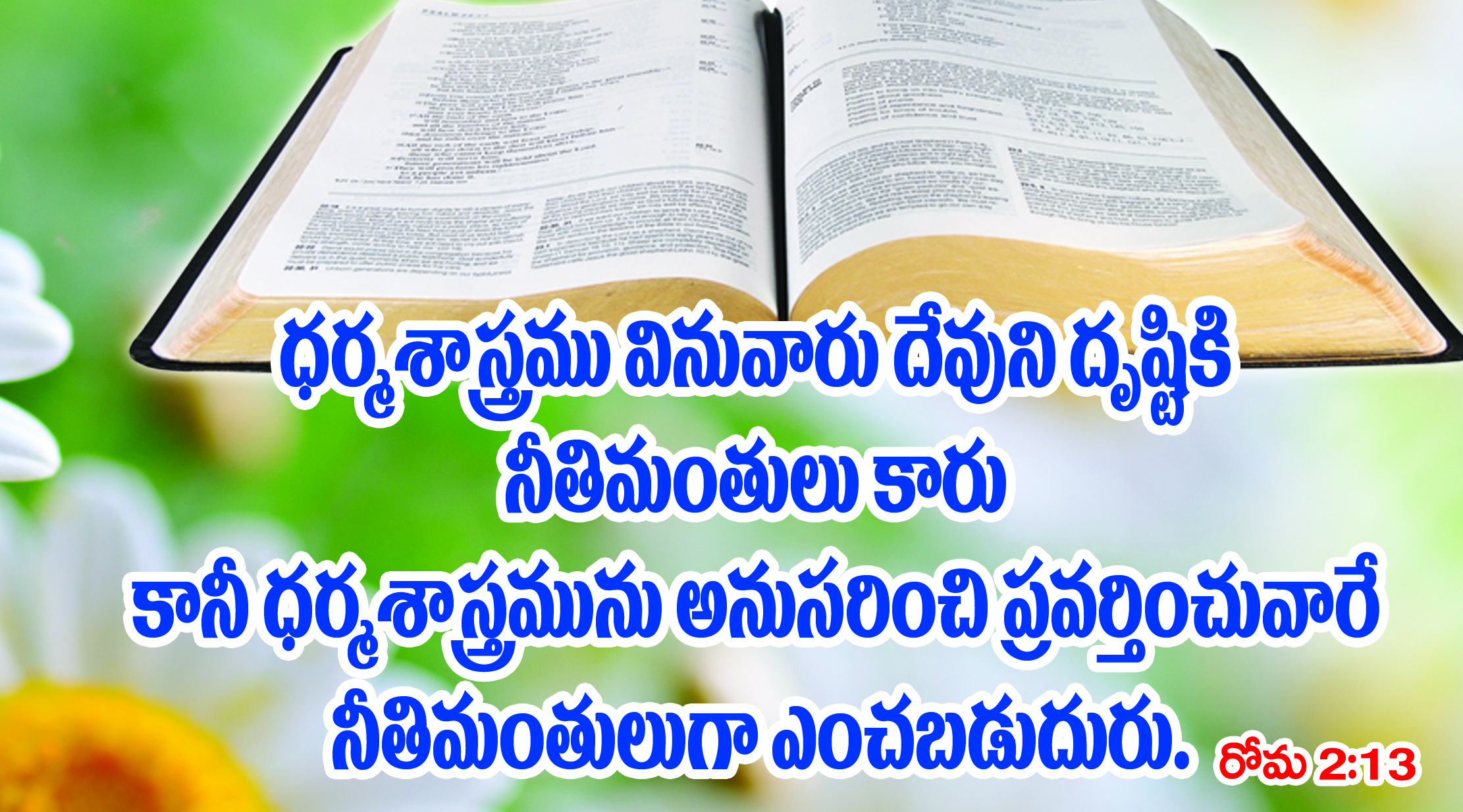 ధర్మశాస్త్రము వినువారు దేవునిదృష్టికి నీతిమంతులు కారుగాని ధర్మశాస్త్రమును అనుసరించి ప్రవర్తించువారే నీతిమంతులుగా ఎంచబడుదురు.౹